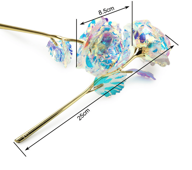 🌹Sparkling, Eco-Friendly Beauty:Each rose is hand-coated with a holographic finish, making it sparkle while being eco-friendly. The realistic PVC petals shine in any light.